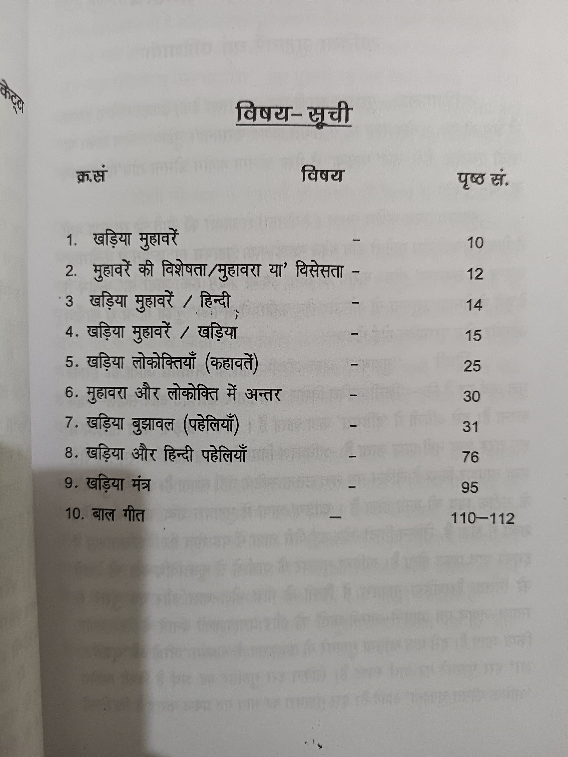 рдпрд╣ рдкреБрд╕реНрддрдХ рдЦрдбрд╝рд┐рдпрд╛ рднрд╛рд╖рд╛ рдХреЗ рд╡рд┐рднрд┐рдиреНрди рд▓реЛрдХрд╕рд╛рд╣рд┐рддреНрдп рдХрд╛ рд╕рдВрдЧреНрд░рд╣ рд╣реИ, рдЬрд┐рд╕рдореЗрдВ рдореБрд╣рд╛рд╡рд░реЗ, рд▓реЛрдХреЛрдХреНрддрд┐рдпрд╛рдБ, рдкрд╣реЗрд▓рд┐рдпрд╛рдБ, рдордВрддреНрд░ рдФрд░ рдмрд╛рд▓рдЧреАрдд рд╢рд╛рдорд┐рд▓ рд╣реИрдВред рдкреБрд╕реНрддрдХ рдореЗрдВ рдЦрдбрд╝рд┐рдпрд╛ рднрд╛рд╖рд╛ рдХреЗ рд╕рд╛рде рд╣рд┐рдВрджреА рдЕрдиреБрд╡рд╛рдж рднреА рджрд┐рдпрд╛ рдЧрдпрд╛ рд╣реИ,┬а
